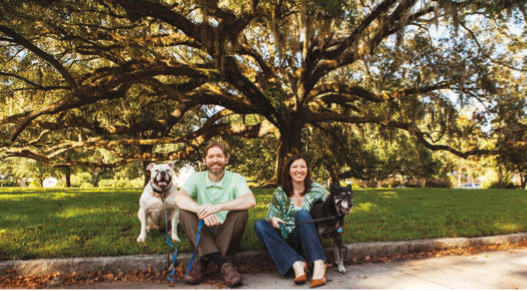 Married since 2010, these two still have puppy dog eyes for each other. AJ grew up in Ardsley Park and now she and Cody own their own home there. You’ll frequently see them walking around the neighborhood (especially with dogs!). They enjoy riding bikes, playing ping pong, throwing darts, and getting together with friends.